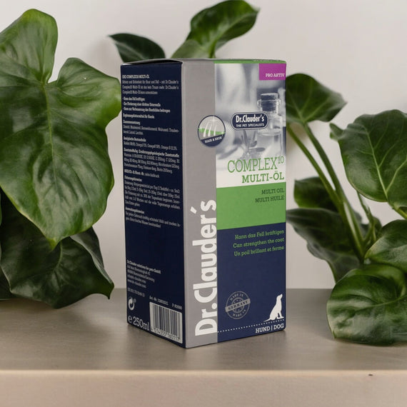 Dr.Clauder’s Multi Derm Complex10 Oil er et næringsrikt kosttilskudd utviklet for å støtte hud, pels og underull hos hund. Oljen tilfører viktige næringsstoffer som kan bidra til en sunn hudbarriere og en blankere, sterkere pels.